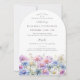 Eleganta akvarell-asters skapar en blomsterkant längst ner på denna välkomstinbjudan i form av en båge. De mjuka pastellfärgade lila, rosa blå och vita blommorna är födelsemånadens blomma i september, vilket gör detta till det perfekta temat för din födelsedag i september.
