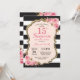 Inbjudan till överraskningsfest för 15-årsdag med rosa peonblommor för flickor. Guldglitter. Rosafärgad akvarellblomma. Svart-vit-randiga. 13:e 15:e 16:e 18:e 20:e 21:a 30:e 40:e 50:e 60:e 70:e 80:e 90:e 100:e, alla åldrar. Digitalt nedladdningsbart. För ytterligare anpassning, klicka på "Anpassa"-knappen och använd vårt designverktyg för att ändra mallen.