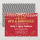 Elegant gyllene överraskningsfestinbjudan med strängljusdesign på röd bakgrund. Klassisk design.