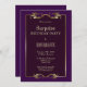 En elegant burgunderfärgad överraskningsinbjudan till födelsedagsfest med en lila ram och utsmyckad guldbård.