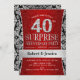 Överraskningsinbjudan till 40-års bröllopsjubileum i rubinröd, svart och silver.