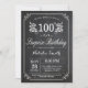 Överraskningsinbjudan till 100-årsfirande med rustik svart tavla som bakgrund och blomsterdekor, svart och vit. Födelsedagsfirande för vuxna. Födelsedagsfirande för män eller kvinnor. Barn, pojke eller flicka, tonåring, födelsedagsinbjudan. 13:e 15:e 16:e 18:e 20:e 21:a 30:e 40:e 50:e 60:e 70:e 80:e 90:e 100:e. Alla åldrar. För ytterligare anpassning, klicka på "Anpassa"-knappen och använd vårt designverktyg för att ändra denna mall.