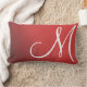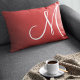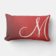 Denna minimalistiska lumbalkudde har ett vitt, överdimensionerat monogram på en röd bakgrund. Om du vill ändra placeringen av brev klickar du på Anpassa ytterligare.