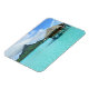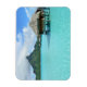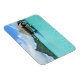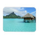 Rektangulär fotomagnet i souvenir med lyxbelagd övervattensbrunn i den blå lagunen på den pacifistiska ön Bora, nära Tahiti i Fransk Polynesien.