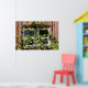Njut av det här strålande, övervuxna ladufönstret på din egen vägg för att få lite land-luft till din dekoration. Väderbeklädda råborden med luddrörning omger ett vitt fönster som är överväxt med intilliggande vindruvor med svartbär. Infångad bakom en övergiven mjölklada.