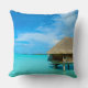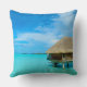 Dekorativ kudde med en bröllopsresaoverwaterbungalow i en lyxig blåttlagun för semesterort utom fara av den Stillahavs- ön av Bora Bora, nära Tahiti i den franska Polynesia skärgården.