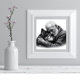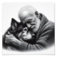 En hjärtvärmande svart-vit konstnärlig porträtt som fångar den djupa kopplingen mellan en äldre herre och hans älskade hundkamrat i en öm omfamning. Denna rörande bild visar den rena, ovillkorliga kärlek som delas mellan människa och husdjur, återgiven i vacker monokrom detalj med exceptionell kontrast och emotionellt djup. Det intima ögonblicket av öm tillgivenhet gör detta verk perfekt för alla hem, veterinärkontor eller utrymme som firar den speciella bandet mellan människor och deras trogna fyrbenta vänner. Finns i flera storlekar för att passa alla rum.