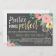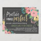 Vacker blommig repetitionsmiddagsinbjudan tryckt med en kritskriftsbakgrund och vackra blommor i pastellfärger. Blommorna är rosa, gula och blå med vackra gröna och grå blad. Övning gör perfekt är skrivet med charmig penselfont för en fantastisk kritskriftslook.