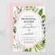 Eukalyptusgrönska Roséguld - Blush Rosa Geometrisk Botanisk Akvarell Vårbröllopsmiddagsinbjudningar på vit bakgrund - inkluderar vacker och elegant skript typografi med moderna botaniska blad och grönska för den speciella bröllopsdagens firande.