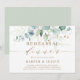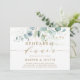 Denna inbjudan till repetitionsmiddagen har målad akvarell eukalyptus, botanisk grön och guld glitter blad med guldskrift.