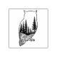 A bold black line drawing of an owl silhouette filled with pine trees and gently flowing lines, blending animal form and nature in a striking double exposure style. Ideal for rustic or woodland-inspired designs.