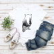 A bold black line drawing of an owl silhouette filled with pine trees and gently flowing lines, blending animal form and nature in a striking double exposure style. Ideal for rustic or woodland-inspired designs.