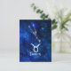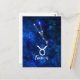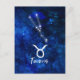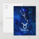 Oxens stjärnbild Blå galax Himmelsdesign. Med trendig borstad scriptfont, Mörkblå himmelsk vattenfärg bakgrundstextur, Lysande stjärnkonstellation och Oxens symbol. Modern astrologisk födelsestjärna Horoskop, är perfekt för alla Oxens födelsedag 20 april - 20 maj! Gör en fin present till alla flickor eller pojkar, familjemedlemmar, tonåringar, fru, make, vänner och astrologiintresserade. Kosmisk rymd Nattliga himmel Postkort!