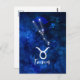 Oxen Zodiak Stjärnbild Blå Galax Himmelskt Mönster. Med trendig borstad script font, Mörkblå himmelskt vattenfärg bakgrundstextur, Lysande stjärnkonstellation och Oxen symbol. Modern Astrologisk Födelseshoroskop, är perfekt för alla Oxens födelsedag 20 april - 20 maj! Gör en bra present till alla flickor eller pojkar, familjemedlemmar, tonåringar, fru, make, vänner och Astrologi-älskare. Kosmisk rymd natt himmel vykort!