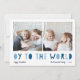 Det vita Hanukkah-fotokortet har två av dina favoritfoton i en familj i fyrkantigt format som är placerade sida vid sida. "Oy to the World" visas under i blått urklipp. Anpassa till din familj namn eller namn, anpassningsbar hälsning och året längs grund. Ett lustigt och modernt Hanukkah-kort designat för att ge dina helgdag lättare glädje.