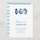 En modern, elegant- och klassinbjudningsmall för 30års födelsedag-partier för kvinnor med ett nautiskt tema, med tre ostron i bläck frimärke och blå och vit typografi samt modern kalligrafi. En perfekt för en kvinna som går trettio år och firar 30års födelsedag med ostron party, eller en strand, strand, hav, båt eller yacht party.