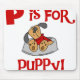 Röd text läser "P är för valp" på dessa gulliga valpdesignT-tröja, muggar, tote bags, kort och mer, underbaren för någon av någon ålder som älskar hundar!