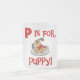 Röd text läser "P är för valp" på dessa gulliga valpdesignT-tröja, muggar, tote bags, kort och mer, underbaren för någon av någon ålder som älskar hundar!