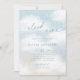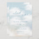 Elegantens blå kalligrafi och drömmande vattenfärgsmoln "Vi är på molnniga" barnduschinbjudan.