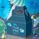 Dreamys nionde födelsedagsfest-förmånslåda med vattenfärgsillustration av blå himmel. I typografiktexten står det "på molnnionen" i retroteckensnittet.