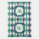 Argyle går 8 bet med denna marinblåa klassiker, kelly grönt och vitfärgintrig med ett ljust - grå kontrast syr att skapa ett perfekt mönster för golfbanan. Skräddarsy monogramen med anslå som är initial för ett personlighandlag.