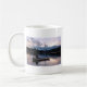 Enkanot driver by, som behagfulla moln recline över avlägsna berg.