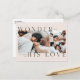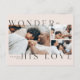 Ett vykort med tre foton har minimal typografi och religiösa hälsning.