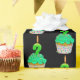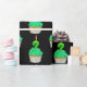 Gröntens frågetecken markerar ljus på cupkaka med godis sprinkles på svart.