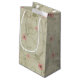 Sväng pipflicka med hår, pärlhalsband och hålla ett glas rött vin på bakgrunden till rosa och grönt blommigt för födelsedag.