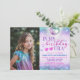 Gå in i din födelsedagstid med den här fantastiska inbjudan, designad för den ultimata Swiftie-interpoleringen! Inbjudan som fångar öga har en glamorös blandning av shock rosa, kalv, blått, rosa och lila, med ett mousserande diskotek boll som är det rätta steget för ett firande att minnas. Perfekt för musikdans party eller festliga samlingar, det är en inbjudan som verkligen skiner. På baksidan finns dessutom en speciell plats där du kan lägga till ett eget foto. skapar inbjudan som personlig och unik som födelsedagsflickan själv. Anpassa med din händelseinformation och få redo för ett party som inte är något kort av legendariskt!