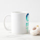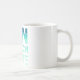 Denna typografimugg presenterar djärva brev från ett hav fotograferar. Spänna av deppighet går från mörk till ljus turkos.