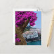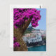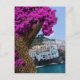 Design visar en vacker Medelhavsområdets kusten med en träd av buganvillas