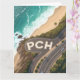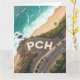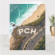 This stylized aerial illustration captures the iconic Pacific Coast Highway as it curves along the coastline, blending natural beauty with graphic creativity. The winding road forms bold “PCH” lettering directly within the composition, guiding the eye through turquoise ocean waves, sunlit sand, and lush coastal hills. With a cinematic perspective, clean lines, and vibrant coastal tones, this artwork celebrates travel, movement, and the timeless allure of California’s most famous highway.