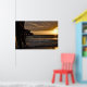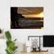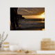 Ett vackert perspektiv på en gyllene pacifistisk solnedgång som vinkar rullar försiktigt in på Santa Monica Pier.