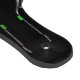 En silhuett med tre svarta vin flaskor med grönt etiketter som glöder i mörken.