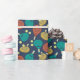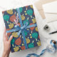 Denna mönstrade papper är perfekt för att slå in en ny padelracket eller andra pamptennisredskap och tillbehör. Det är för att det har en mönster av padel-rackets och bollar i granater av teal, guld, terra cotta, gult och grädde mot en marin blå bakgrund.