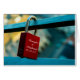 Detta kort kommer från den europeiska tradition som inleddes under WWI, nämligen att med älskare namn fästa "kärlek-lås" på broar, staket och monument och kasta bort nyckel för att symbolisera det eviga, oförstörbara kärlek (denna information är skriven på baksidan av kortet, men den kan tas bort). Kontakta mig om du har problem med att anpassa kortet så kommer jag att vara lycklig för att göra det åt dig.