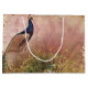 Bröllopspresentbag som matchar brevpapper och festdekoration. Elegant chinoiserie-stil, vintage påfåglar målades i akvarell och blandades med eleganta rosablommiga pioner, guldscrollar och virvlar och kollage med subtila efemära element. Denna kollaage utformades grafiskt av internationellt licensierad konstnär och designer, Audrey Jeanne Roberts, upphovsrätt.