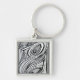 Påfågel Fyrkantig Silverfärgad Nyckelring