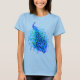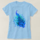 T-shirt med en fantasifull påfågel med en praktfull svans, i nyanser av djup turkos och koboltblått, på en mjuk akvafärgad bakgrund