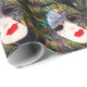 Eleganta och färgrika påfågel fjädrar och Mardi Gras pärlmask maskerad presentpapper. Detta vackra Mardi Gras maskerad fest mask papper för inpackning fungerar bra för en maskerad fest present, födelsedagsfest eller någon annan Mardi Gras eller maskerad tema present eller händelse.