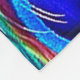 Påfågelfjädern med det marin- blåttpeafowlögat och lilor färgar.