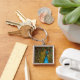 Påfågelglansillustration Fyrkantig Silverfärgad Nyckelring