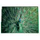 Påfågelhanen breder ut sin stjärt för att locka till sig honor samtidigt som han skrämmer andra hanar.
