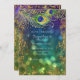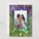 Matchande FOTO SAVE THE DATE: Denna design har en gnistrande glitterram och handmålade påfågelsfjädrar prydda med grafiskt utformade diamantjuveler (OBS: detta är en platt tryckt inbjudan, det finns ingen faktisk guldglitter eller metallfolie eller bläck som används) över en djup rik bokeh-gnista, tindrande ljus bakgrund i djup, rik lila, blå, aqua och grön. Baksidan är den matchande skimrande ljus bakgrunden med endast ramen och ert förlovningsfoto, namn och bröllopsdatum. Ändra enkelt din text med hjälp av de mallfält som tillhandahålls. Konstnärligt målad och grafiskt utformad av internationellt licensierad konstnär och designer, Audrey Jeanne Roberts, upphovsrättsskyddad.