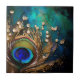En vacker stor enkel påfågelsfjäder är inklämd i det vänstra hörnet av denna kakel och är placerad mot en marmorerad teal, grön, mörkblå och falsk guld bakgrund. Små pärl droppar är utspridda runt fjädern och ger designen en lyxig, klassisk och elegant känsla. Denna grafik är INTE sömlös och är idealisk för hotell, resorter, villor, loger och penthouse-lägenheter som vill lägga till en touch av stil på sina väggar. Lämplig för köks backsplashar, badrum eller bara som en accent touch på ett bordsskiva, Denna generativa innehåll 3D (tredimensionell ser ut) grafik kommer säkert att wow dina gäster.