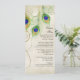 FÄRGPALETT: Svart, tan, kräm, guld, blå, grön och lila. DESIGNKOLLEKTION: Matchande formella evenemang eller middagsmeny kort. Detta är en del av en komplett matchande produktserie för bröllopsinbjudningar. Dessa moderna, samtida Påfågel Fjädrar Bröllopsinbjudningar är trendiga, eleganta och chic. Konsten är från original akvarell konst handmålad av Audrey Jeanne Roberts. Det finns en bakgrund av texturerad, tekrossad, gammal spets, stiliserade, moderna påfågel fjädrar och en koordinerande färgsidokant. På baksidan finns din personliga bröllopsinbjudan text, en uppsättning påfågel fjädrar med handritade virvlande rullar i