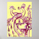 Påfåglar i kärlek, röd lila och gul poster