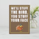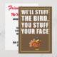 Vi stoppar fågeln, du stoppar ditt ansikte rolig Vänner tackfest inbjudan med en tecknad kalkon på en brun bakgrund. En bra inbjudan för att bjuda dina vänner till en Vänner tackfest middag!