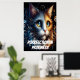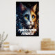 En mesmerierande målning av en katt med träffande blå ögon, som ser direkt på betraktaren. Katterna päls är avbildade i rik, med elegant och regalt utseende. Pågående skydd